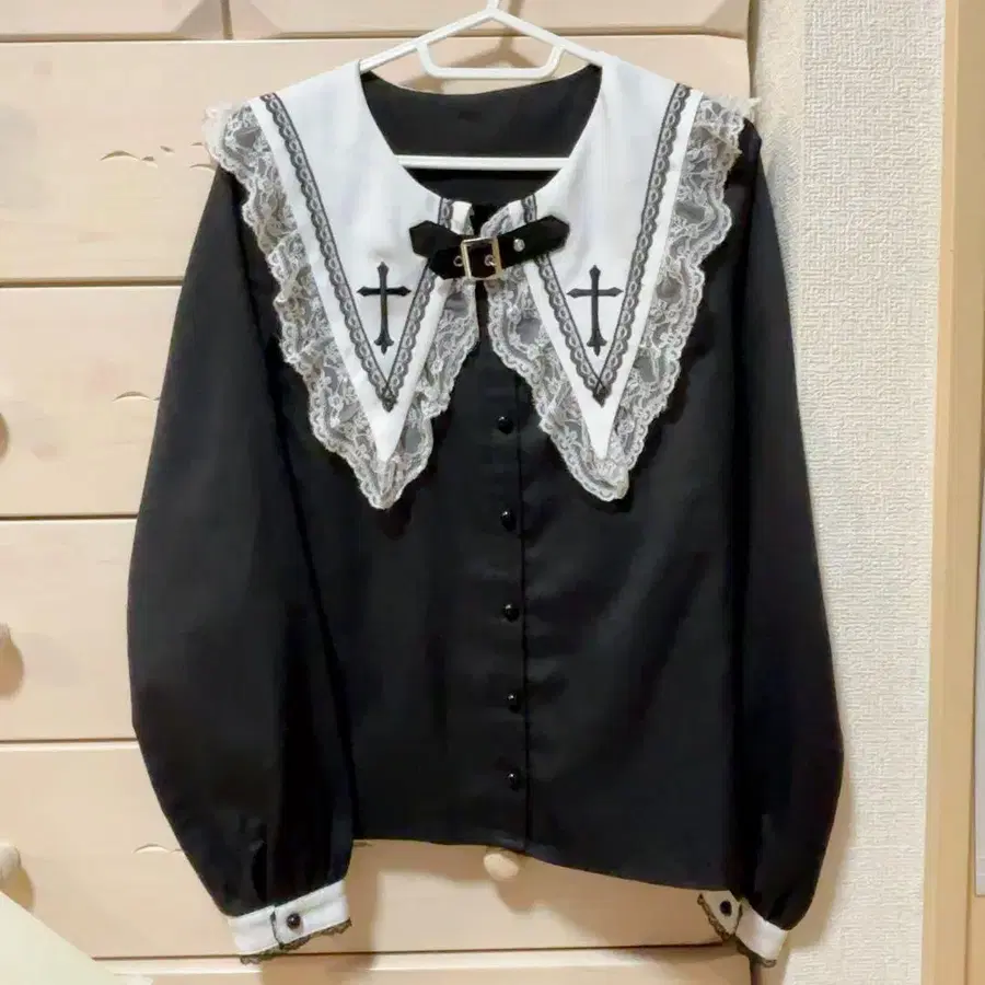 MARS 벨트 포함 크로스 자수 블라우스 화이트