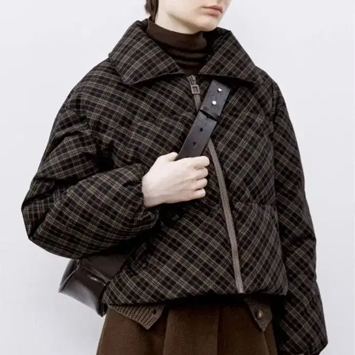 tageechita 체크 무늬 숏 다운 자켓 타지치타