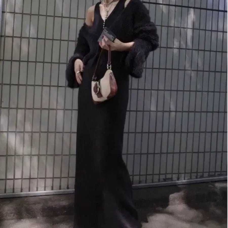 AMERI FEATHER CARDIGAN KNIT SET DRESS