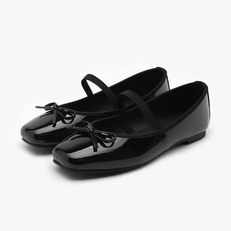 Erino 에나멜 리본 메리 제인 플랫슈즈 블랙