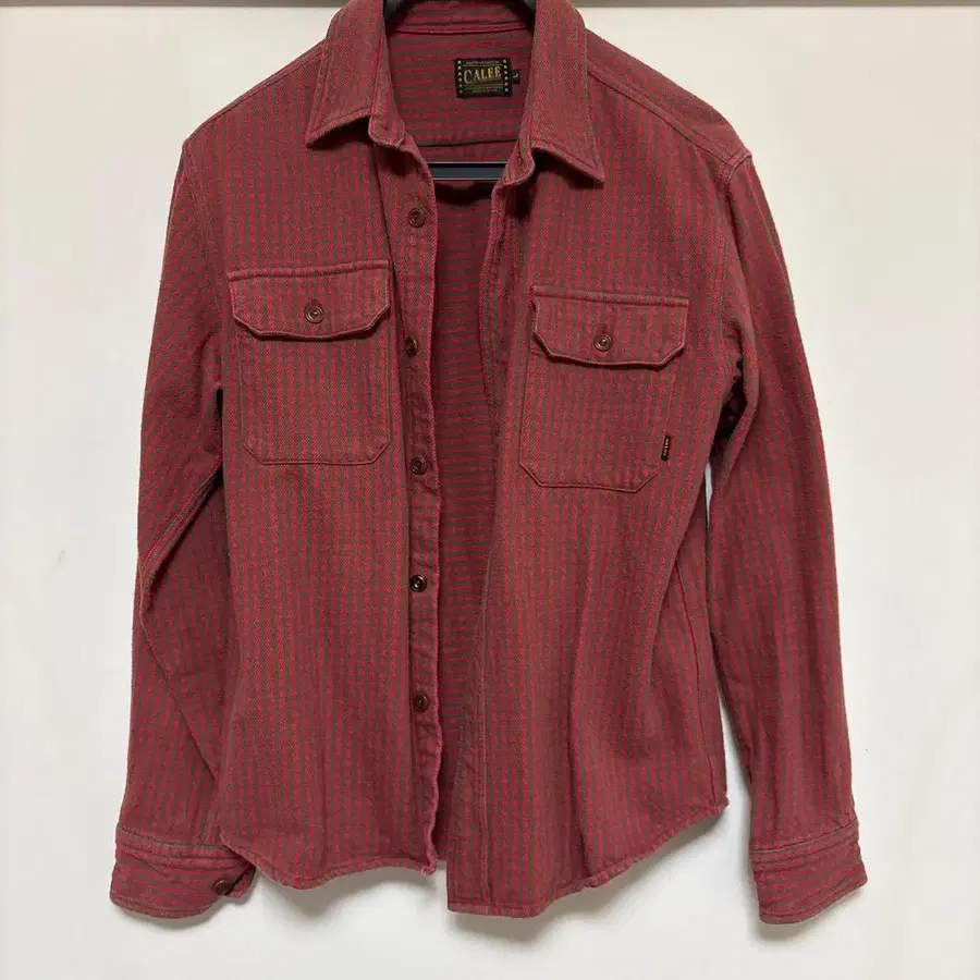 CALEE 빨간색 그린 스트라이프 긴팔 플란넬 셔츠 L