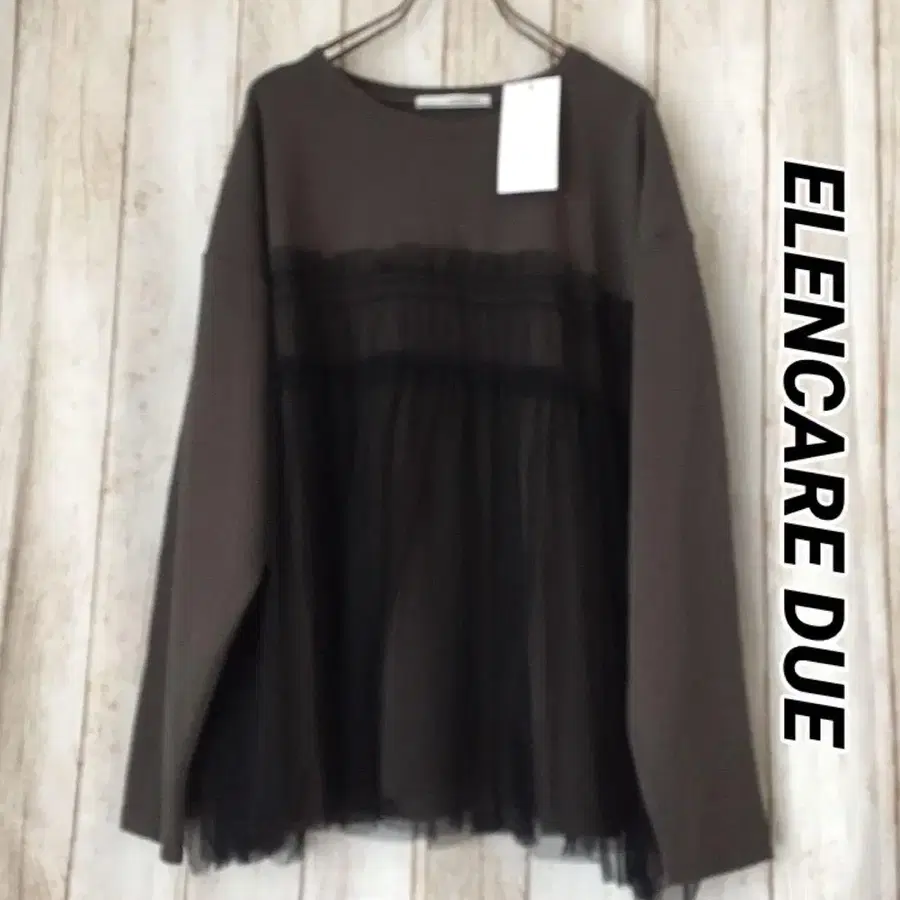 미사용 ] ELENCARE DUE 튤 도킹 티셔츠 다크 그레이
