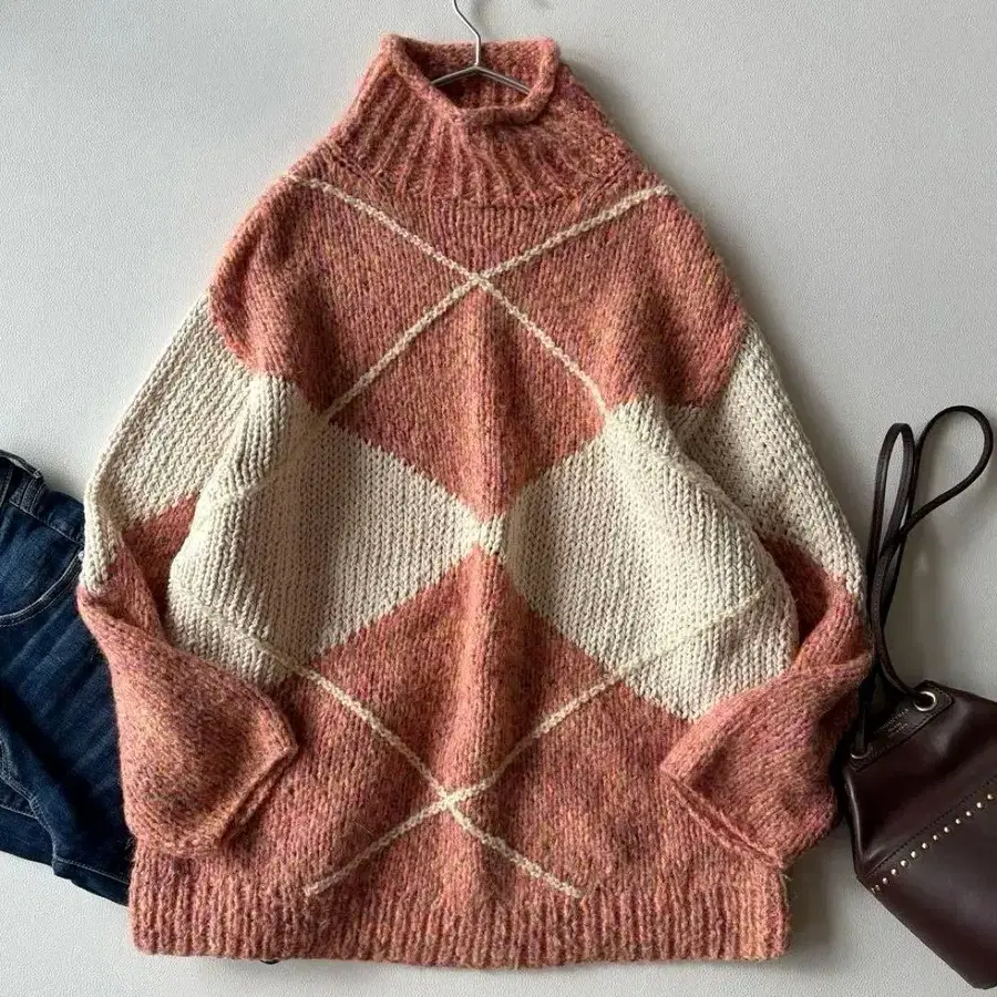 투모로우랜드 맥피 릴렉스 성숙/러블리 고급 믹스 얀 아가일 니트