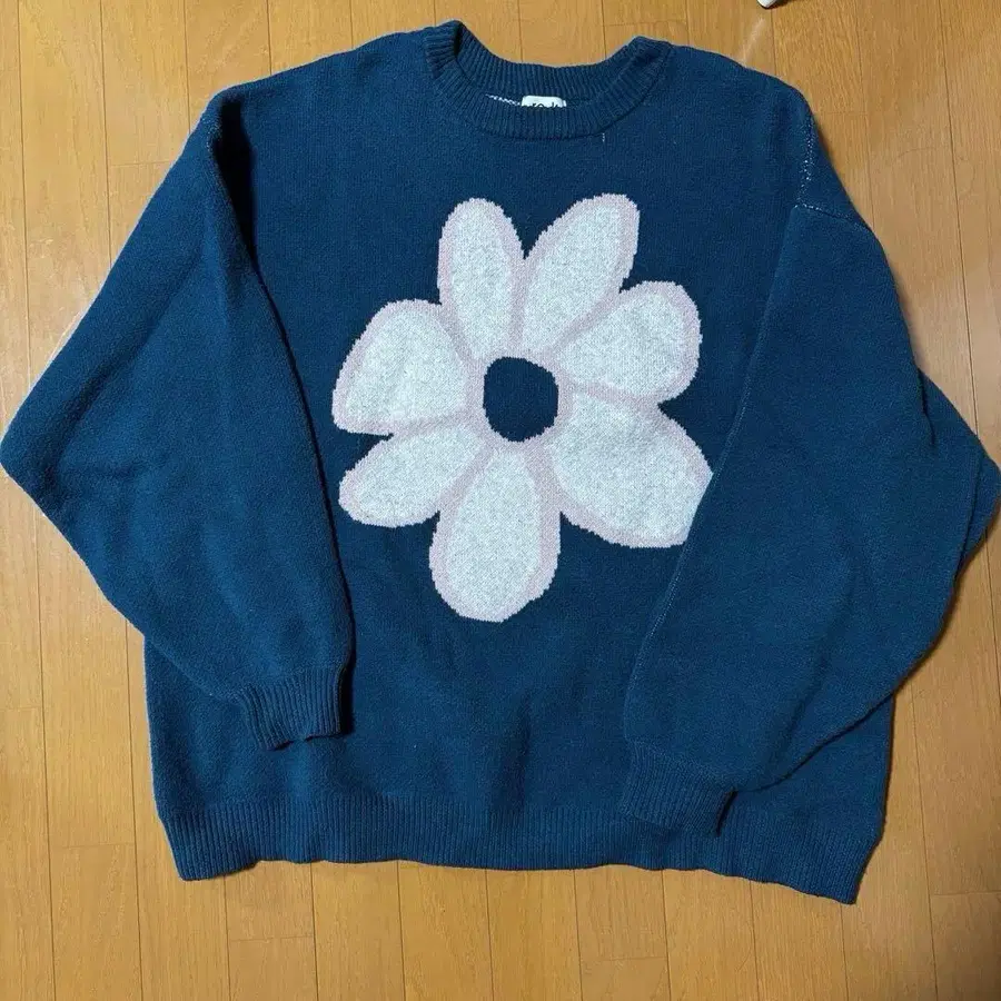 • 3.14 오버 사이즈 스웨터 블랙 꽃 디자인 니트 가을/겨울