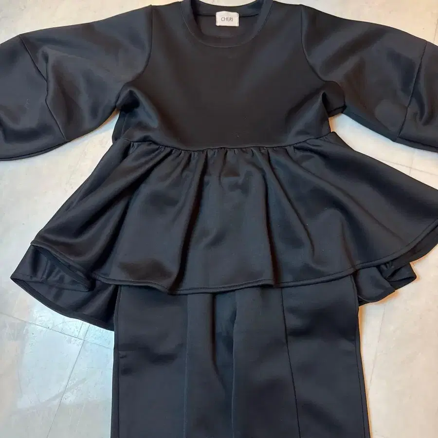 CHERI 블랙 새틴 플레어 셋업 M