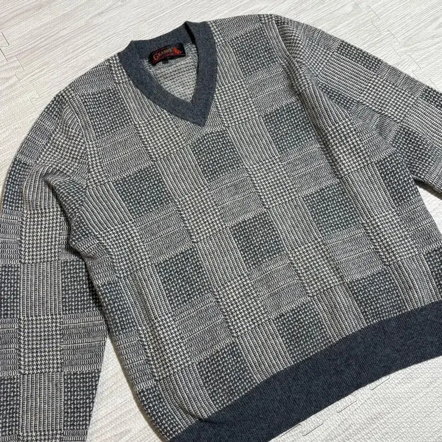 캐시미어 100% 남성용 L 체크 무늬 V넥 그레이 계열