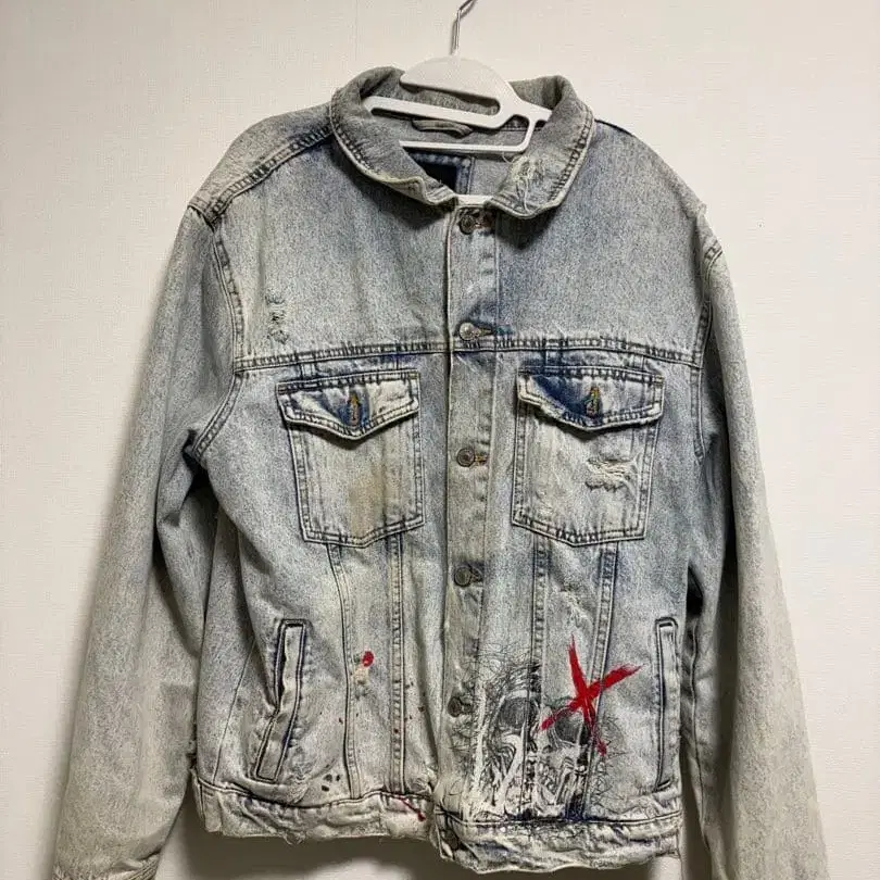 페인트와 데미지가 디자인된 ZARA MAN 데님 자켓입니다.