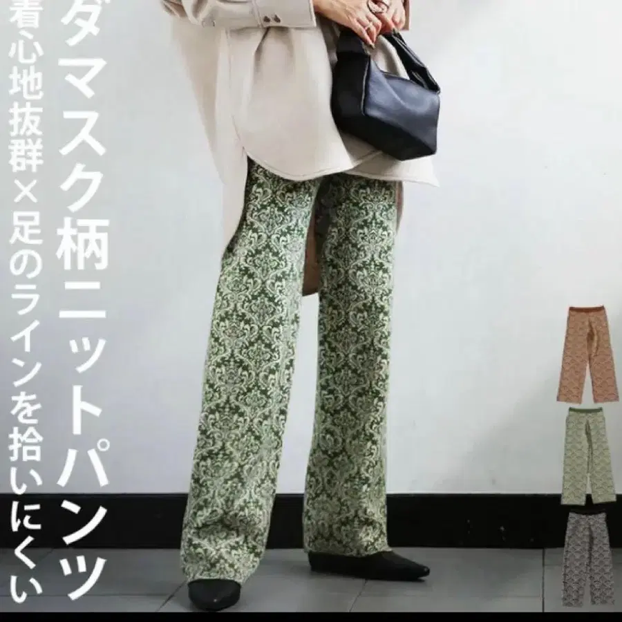 안티카 새상품급 인기 고평가 완판템 다마스크 무늬 니트 팬츠 그린