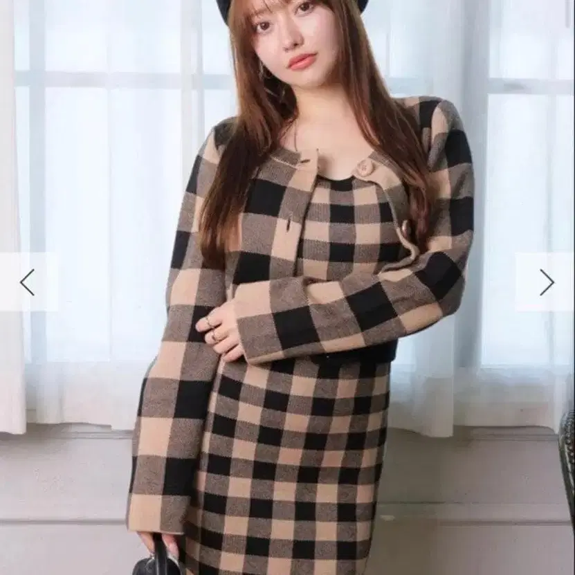 립 서비스 LIP SERVICE 레트로 체크 앙상블 니트 원피스