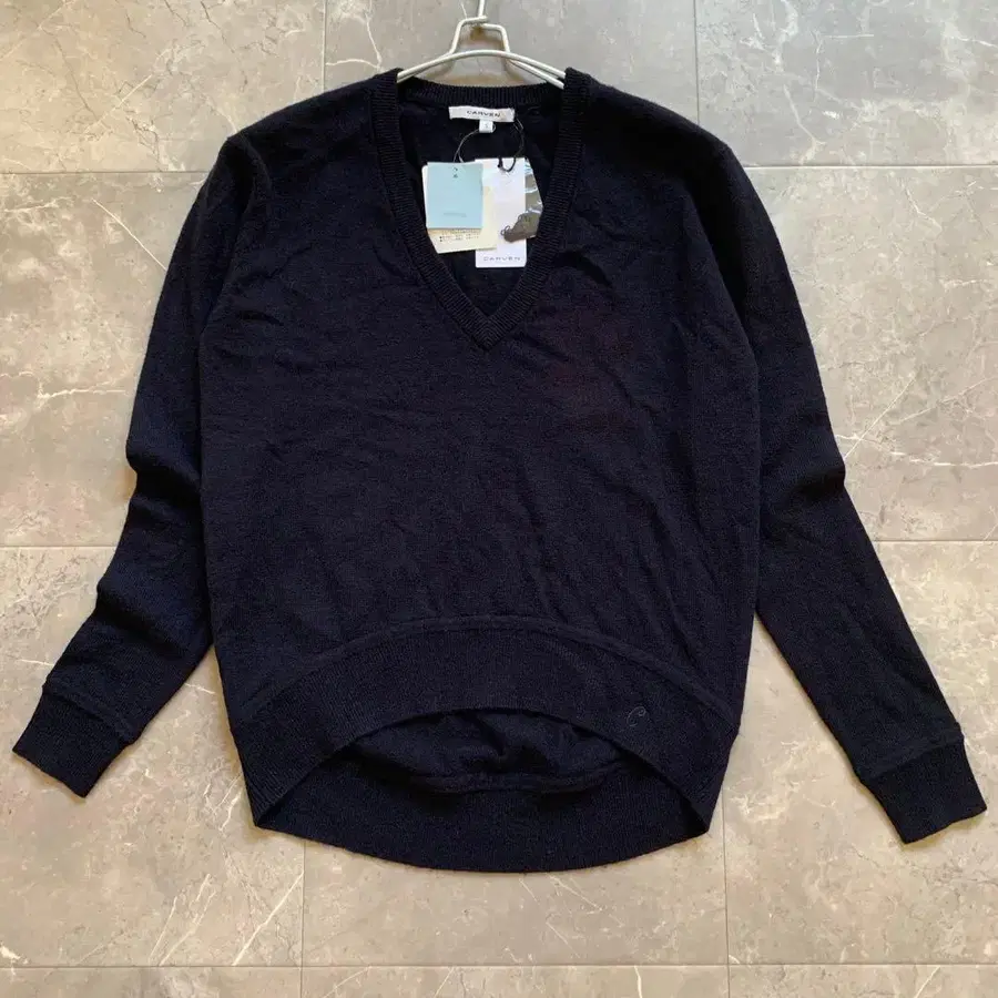 CARVEN 칼벤 V넥 울 니트 캐시미어 혼방 네이비 자수 미사용