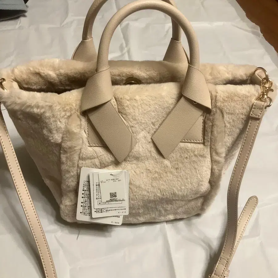 내추럴 뷰티 클래식 크림색 퍼 핸드백
