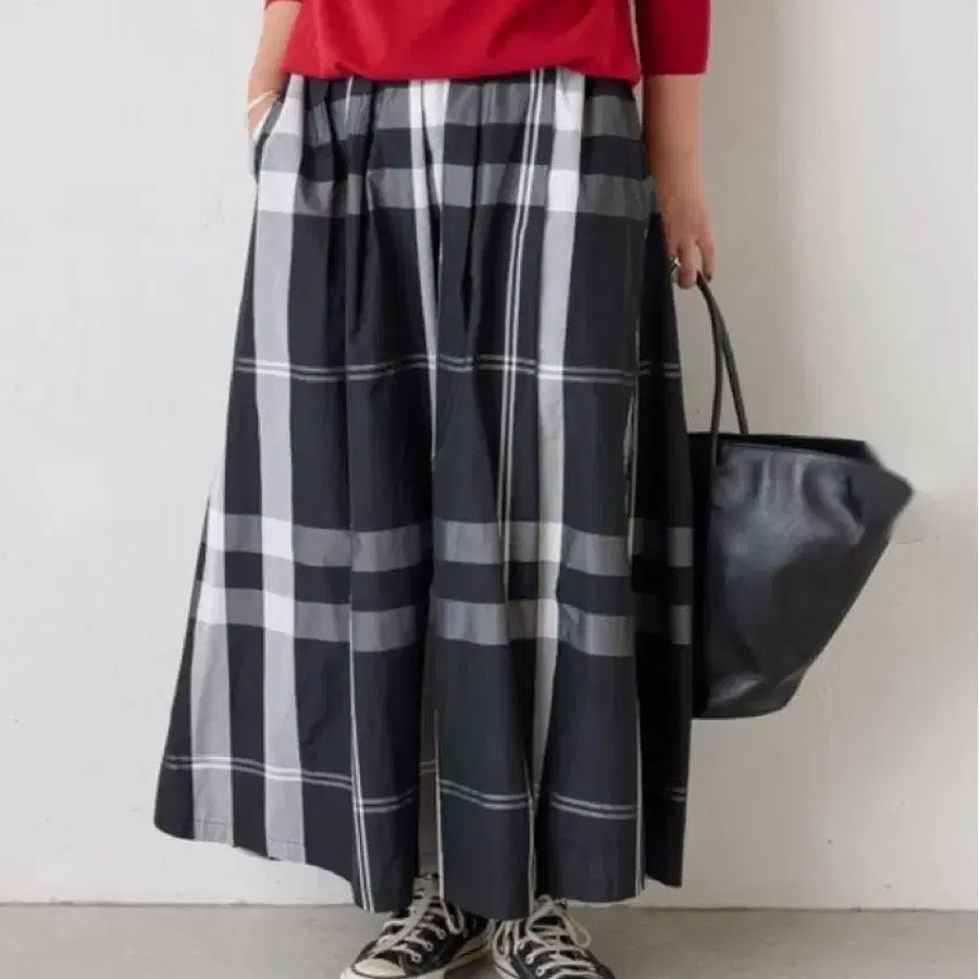 비어즐리 빅 체크 타프타 스커트 블랙 허리밴딩 올 시즌