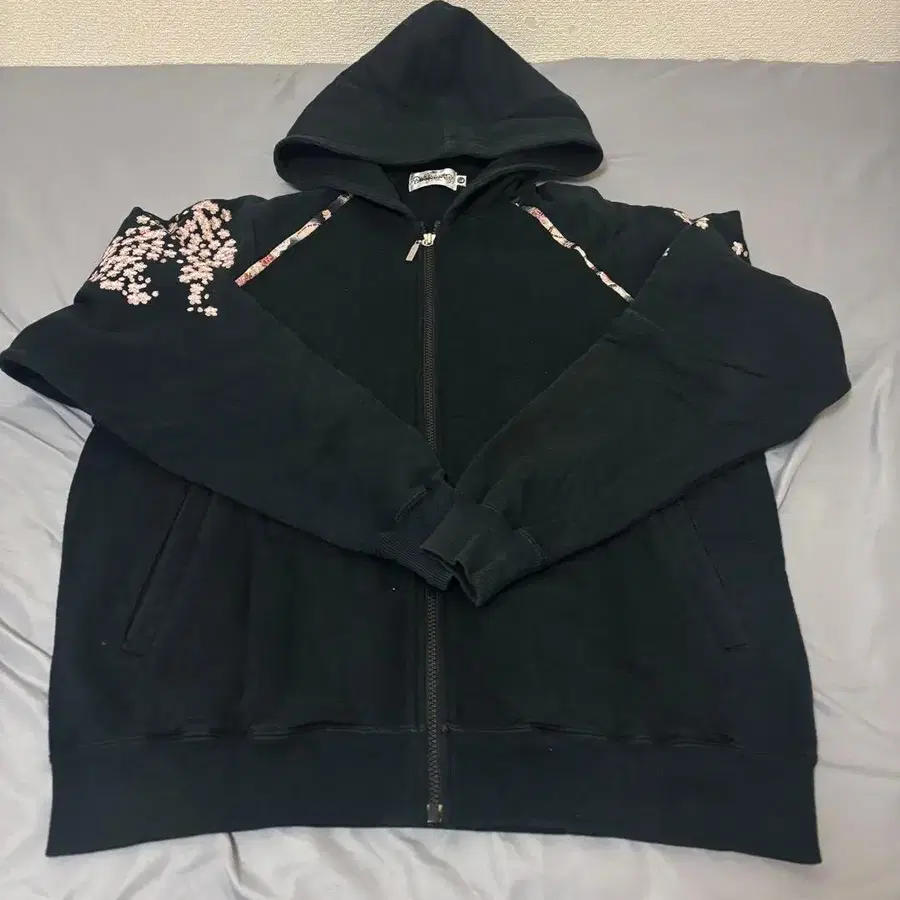 카라쿠리타마시 도둑 일기 벚꽃 자수 (팔) 후드티 저지 지퍼 후디