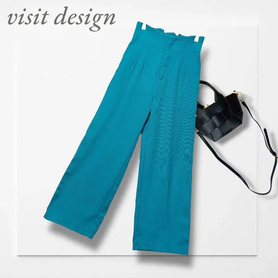 비짓 디자인 하이웨스트 팬츠(M) 터콰이즈 화려한 스타일업
