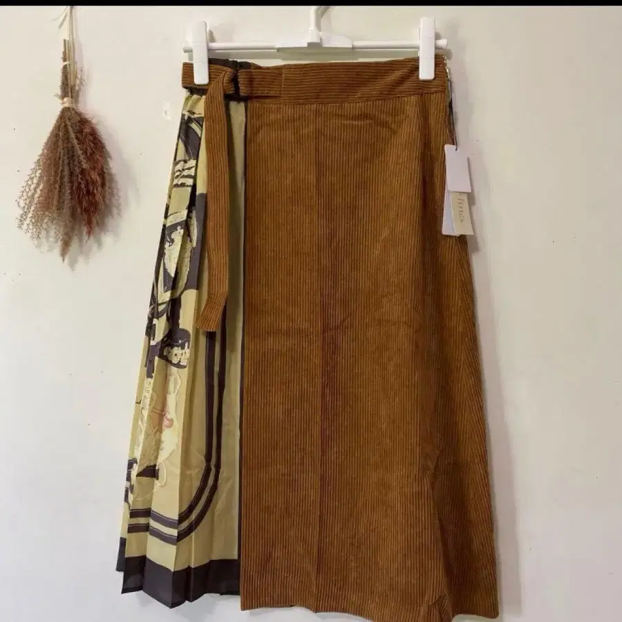 택 포함 새상품 티네스 이소재 도킹 스커트 종아리 기장 코듀로이 38
