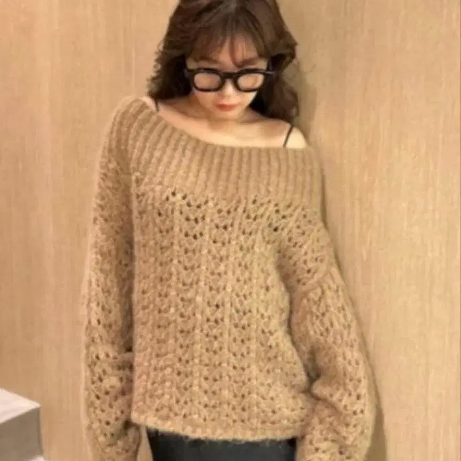 몸통 부분은 적당히 여유 있는 레이시한 패턴 편직으로, 이너 레이어드도 즐길 수 있는 아이템입니다.