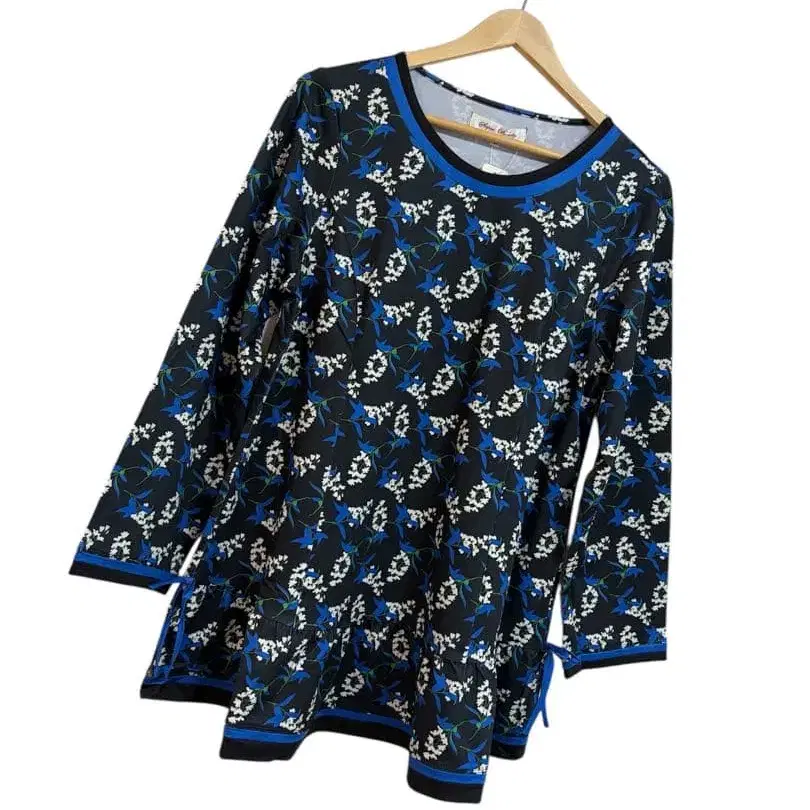 슈퍼 뷰티 블루 계열 플라워 프린트 튜닉 티셔츠 44