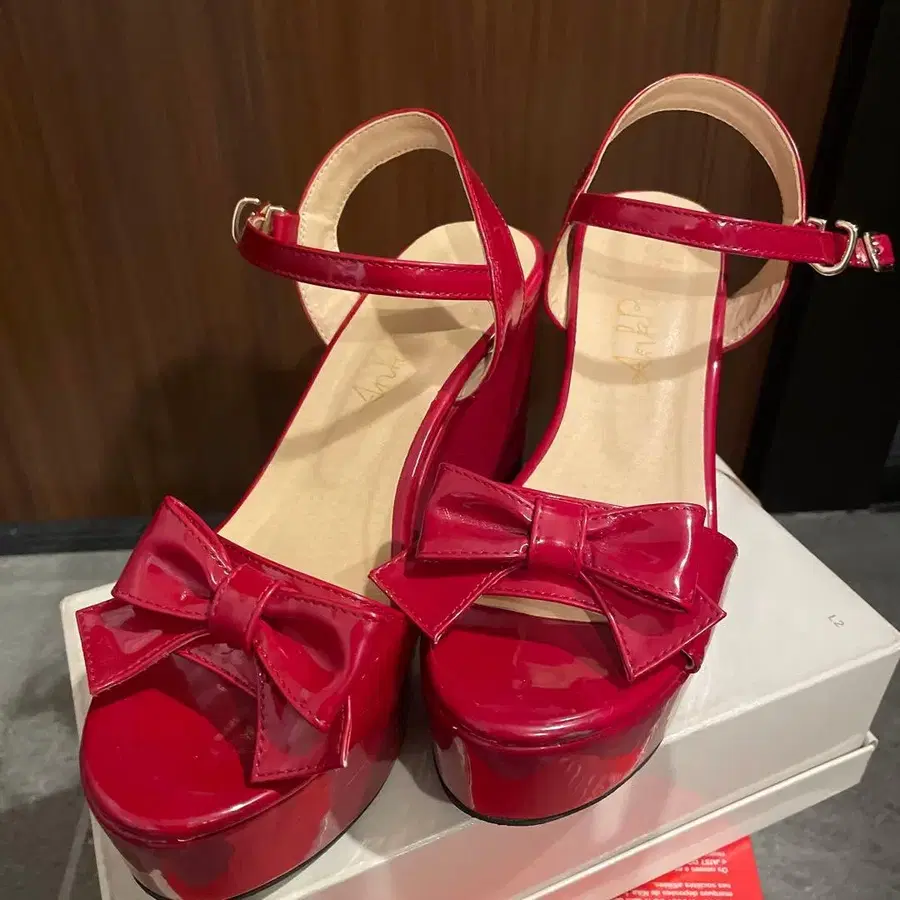 빨간색 리본 포함 플랫폼 힐 샌들