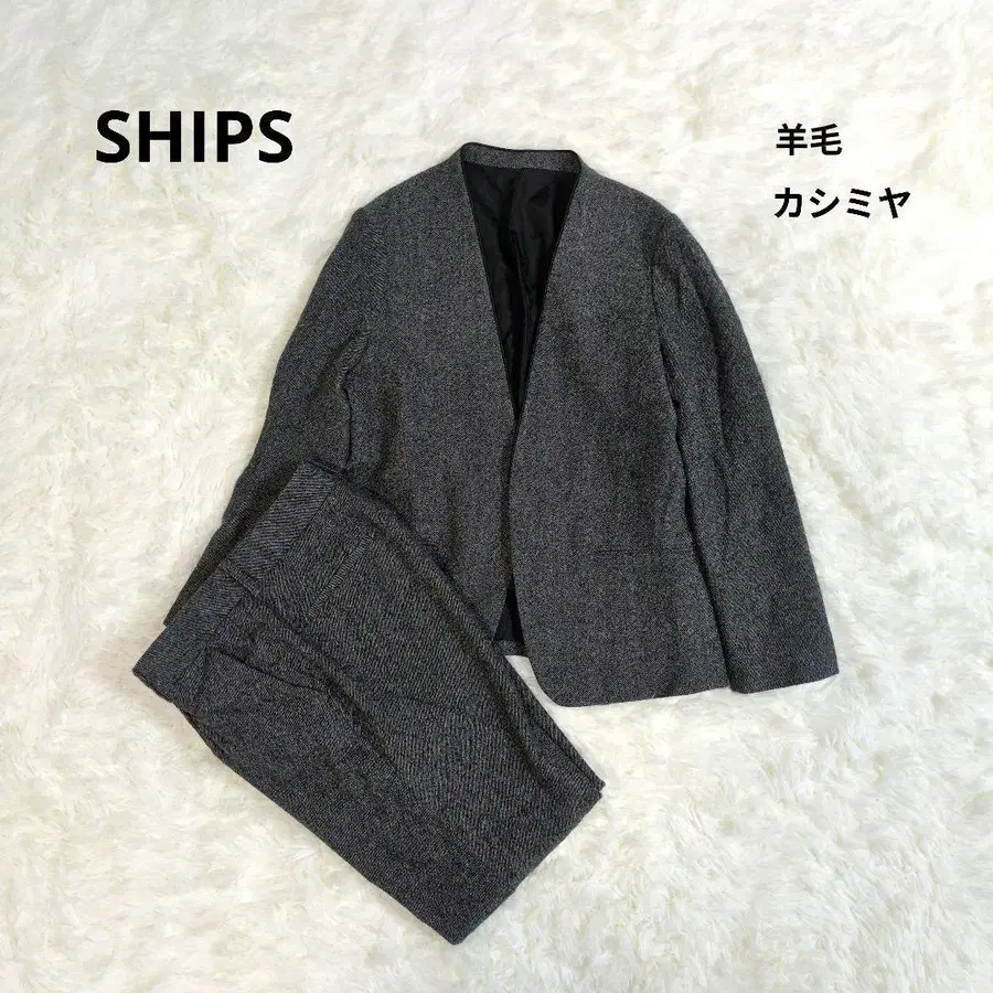쉽스 셋업 수트 노카라 팬츠 양모 램스울 캐시미어