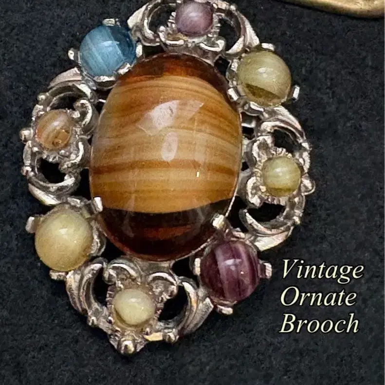 빈티지 영국 페이크 마노 브로치 펜던트 헤드