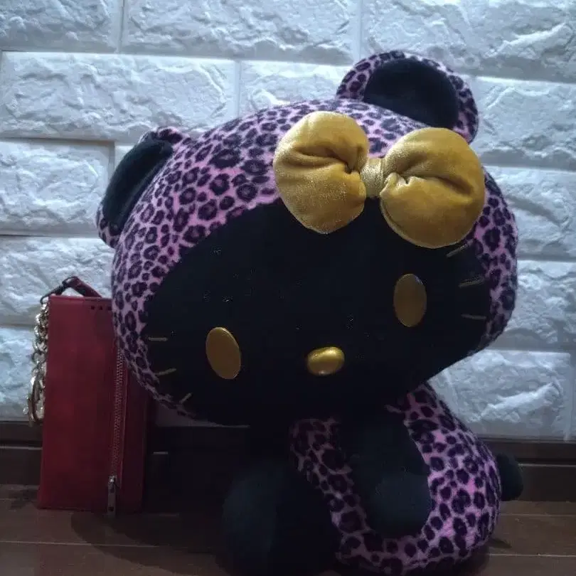 키티 블랙 핑크 레오파드 무늬 봉제 인형