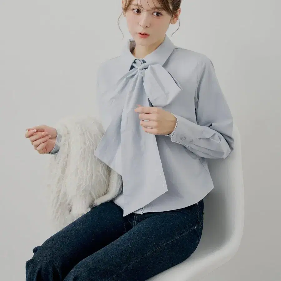 Chico (SALON by Chico) 리본 포함 레이스 디자인 셔츠