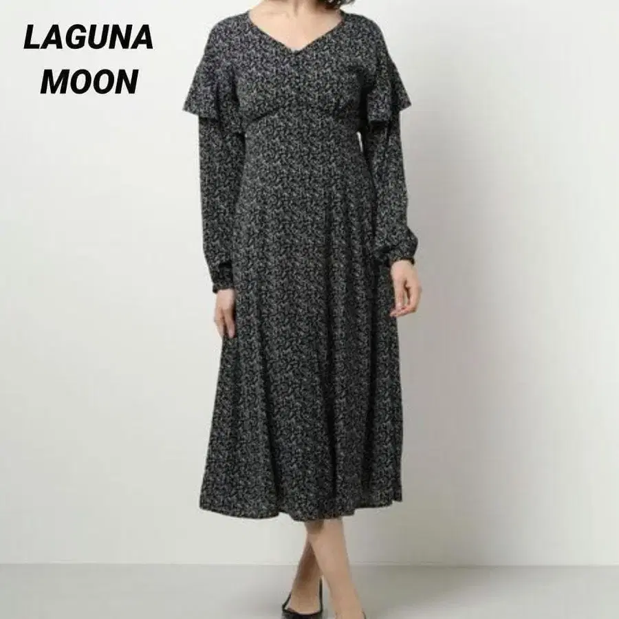 러그나무 문 원피스 긴팔 블랙 올 패턴 S 플레어 프릴 익명 배송