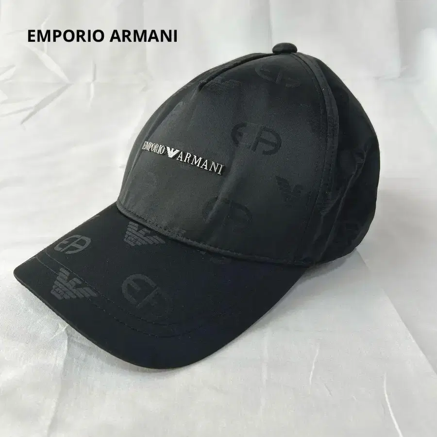 EMPORIO ARMANI 캡 모자 올 패턴 블랙 메탈 로고