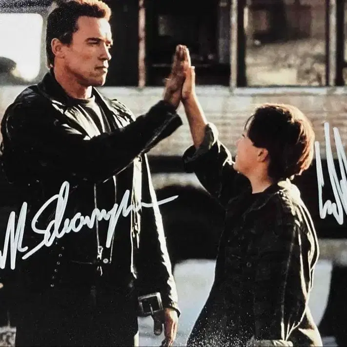 아놀드 슈왈제네거 에드워드 퍼롱 친필 사인입 사진 L