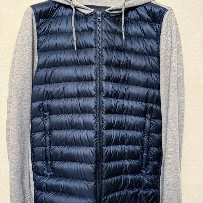 HERNO 헬노 하이브리드 후드티 라이트 그레이 x 네이비 46