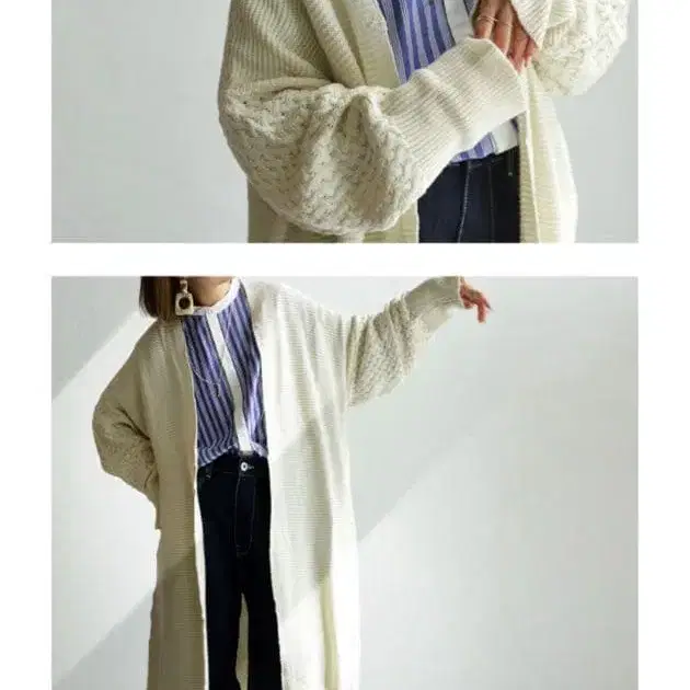 안티카 antiqua 아이보리 롱 가디건 케이블 니트 소매 포함