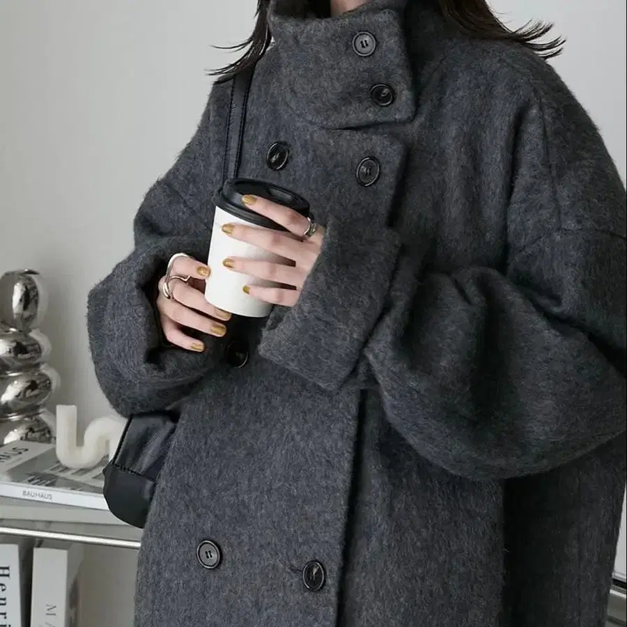 [ forksy. ] 샤기 오버 사이즈 하이넥 미들 코트