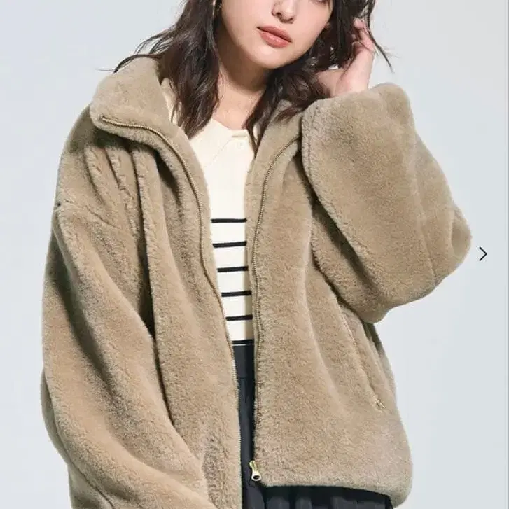 coca 워셔블 인조 모피 스탠드 카라 블루종