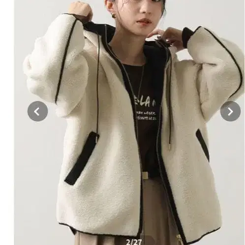 Gready Brilliant 아이보리 플리스 자켓 후드 부착