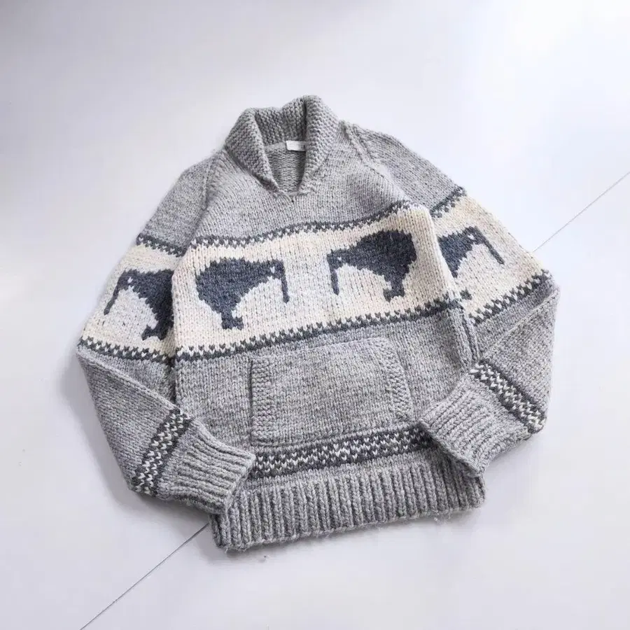 뉴질랜드제 핸드메이드 울 니트 키위 패턴 그레이 포켓 C21