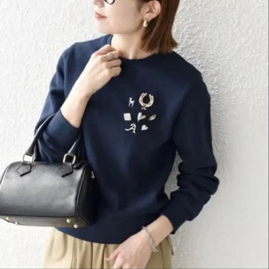 브로치풍 비쥬 모티브가 포인트인 크루넥 맨투맨.