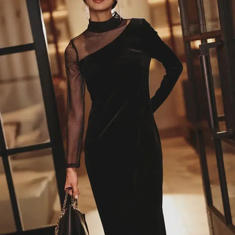 미사용 새상품 anuans 시어 콤비 타이트 원피스 아뉴앙스