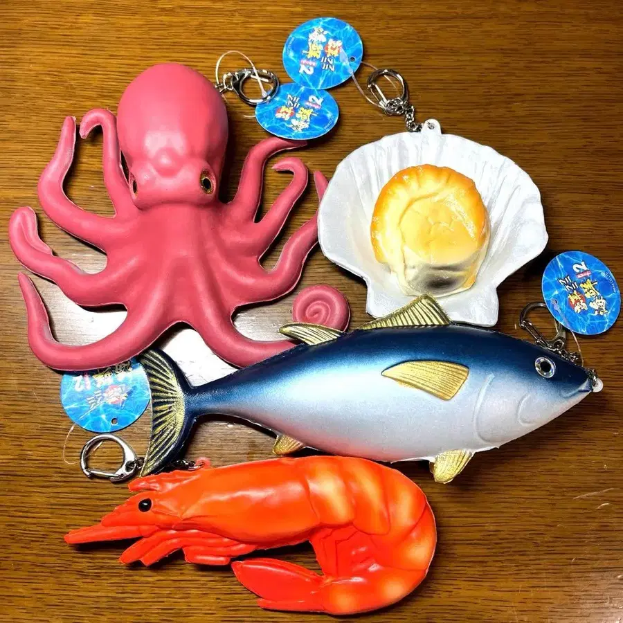 럭셔리 푸니푸니 해산물 세트 문어, 가리비, 참치, 새우 키링 4종 세트
