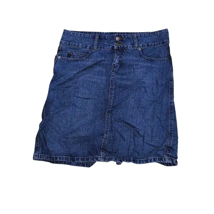 자동 번역되었어요. 원문보기다크 블루 데님 미니스커트, 백 포켓이 있어 스타일리시합니다.