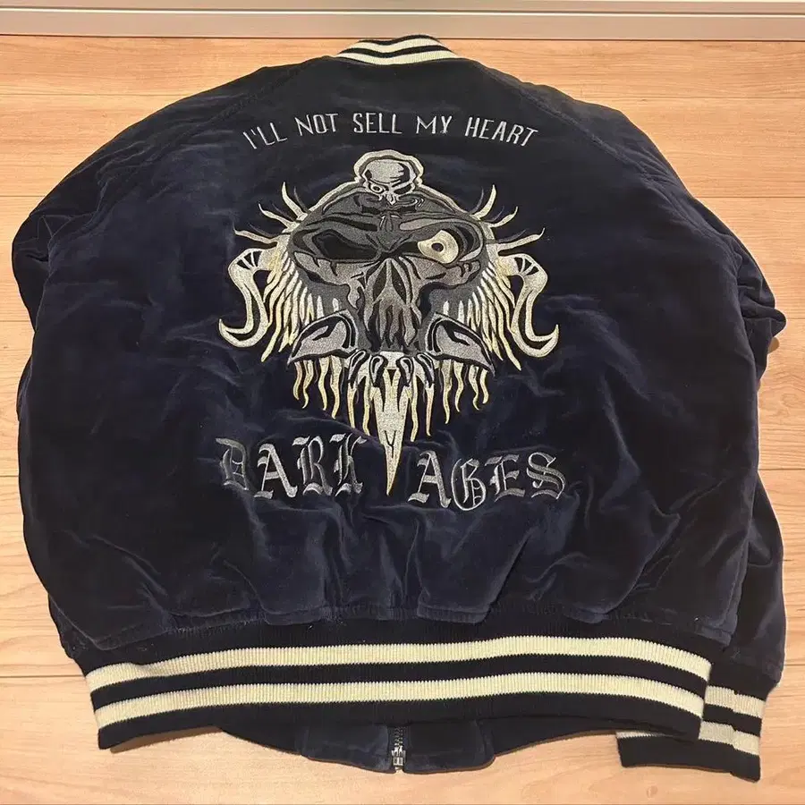 자수 벨벳 스카잔 수베니어 자켓 해골 L 사이즈 네이비