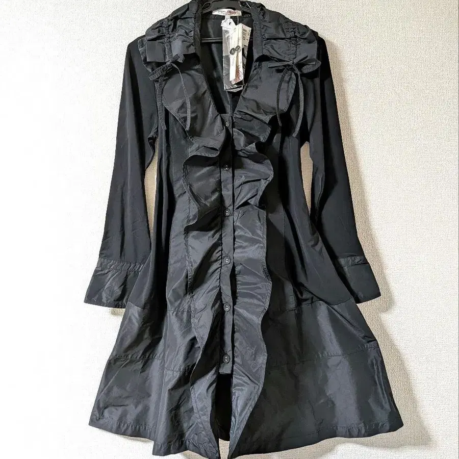 새상품 Super Beauty 프론트 프릴 이소재 원피스 블랙 40