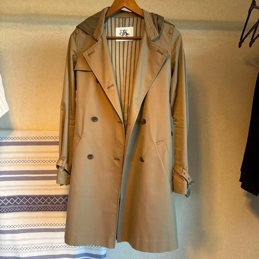 일본제 후드 부착 더블 브레스트 트렌치코트