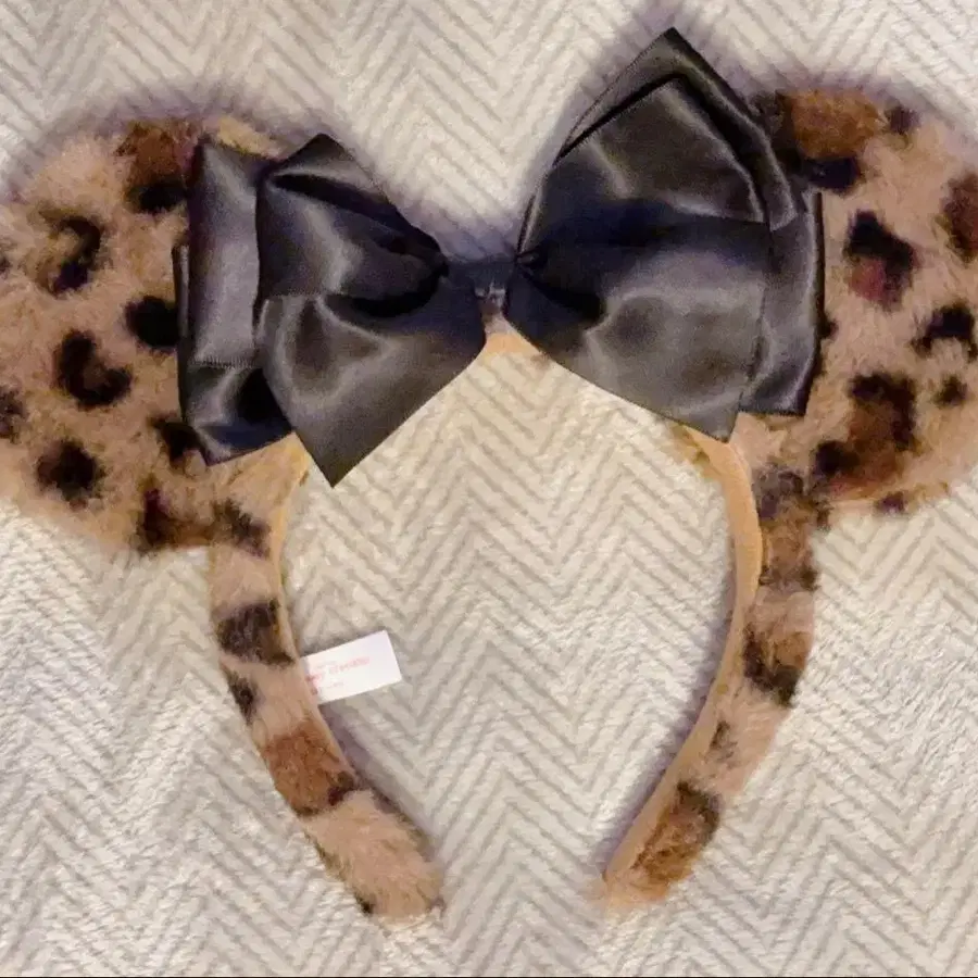 미니 머리띠 레오파드 무늬 & 블랙 리본
