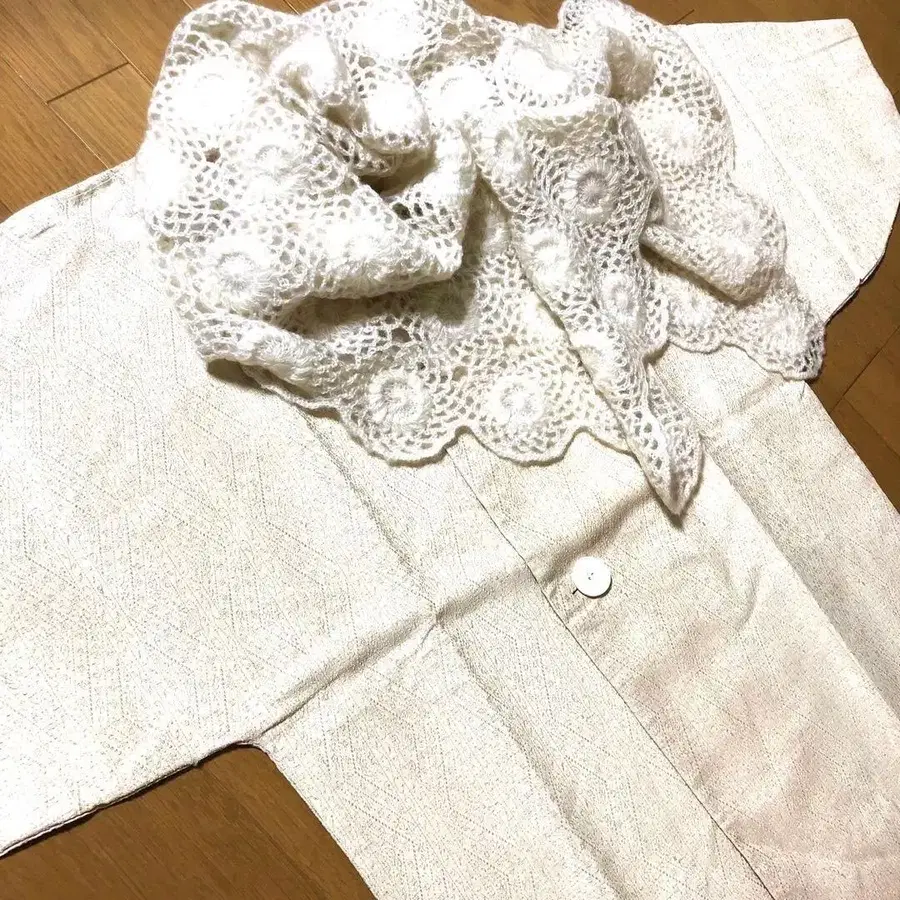 빈티지 화학 섬유 기모노 코트 레트로 아이보리