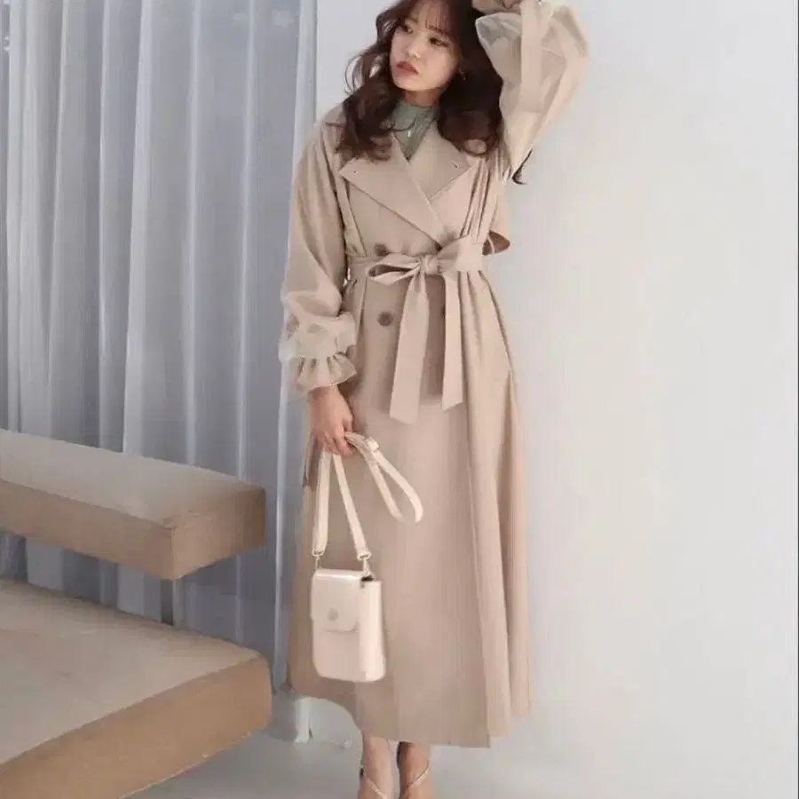 ROYAL PARTY 튤 레이어드 슬리브 트렌치코트