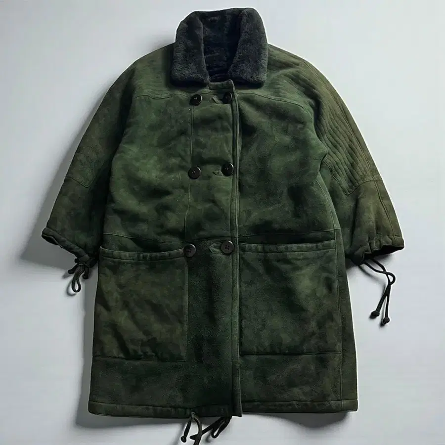 레어 빈티지 리얼 가죽 무스탕 코트 올리브 그린 양가죽 양모