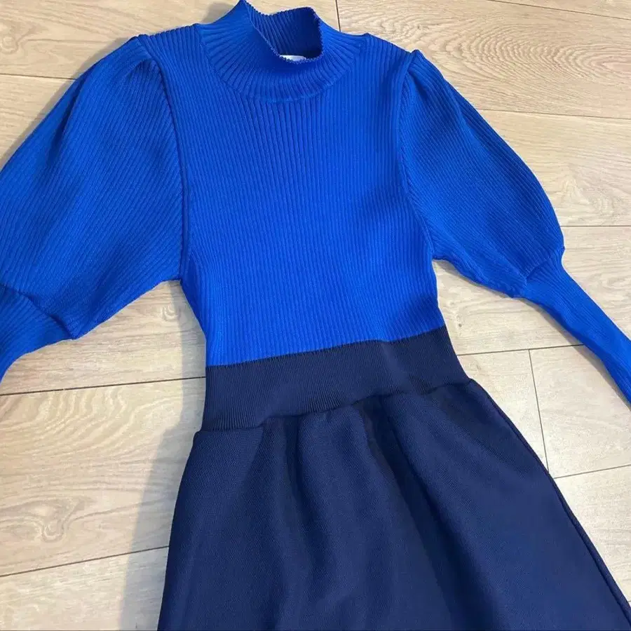 바니스뉴욕 퍼프 슬리브 리브 편직 니트 원피스 하이넥