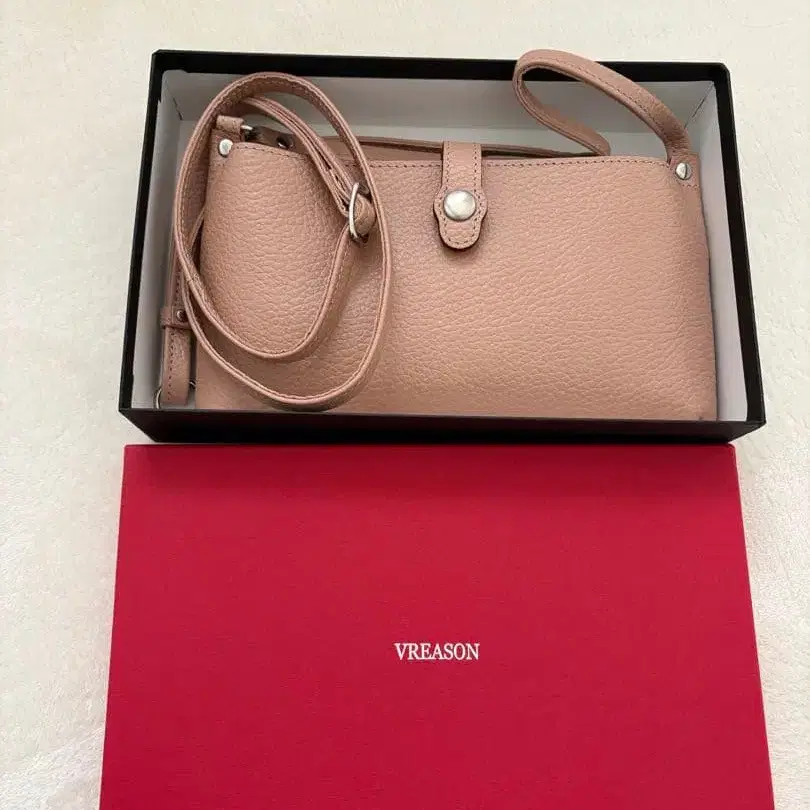 새상품 VREASON 로즈 스마트폰 파우치 가로형 소가죽