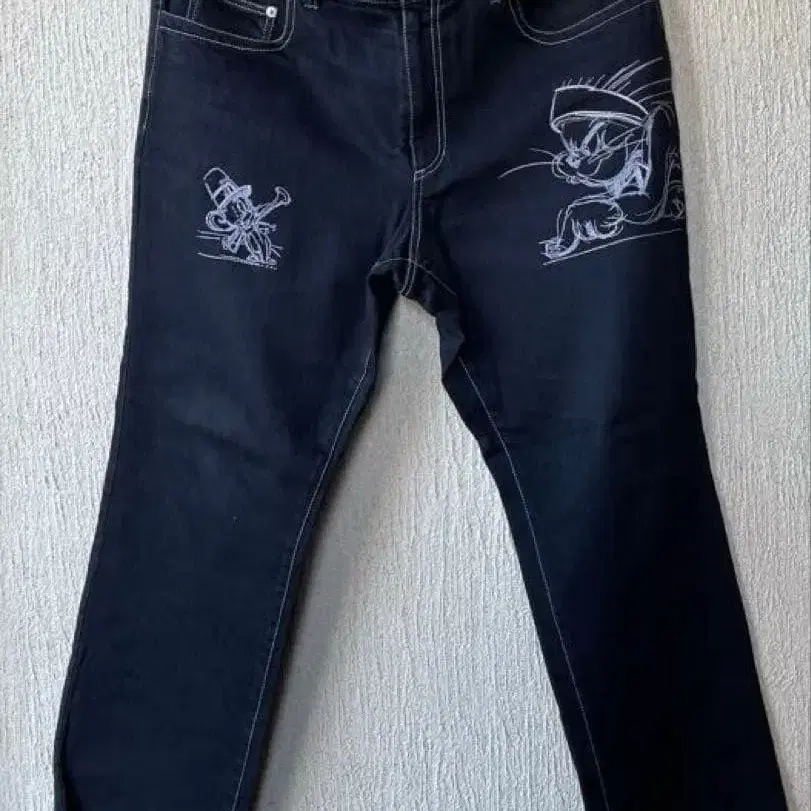 까스텔바작 톰과 제리 자수 블랙 데님 팬츠