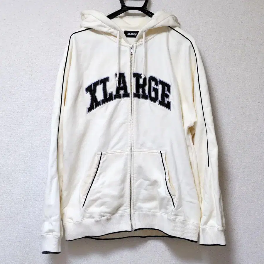 XLARGE 지퍼 후드티 아이보리 풀 집업 파이핑 라인 아치